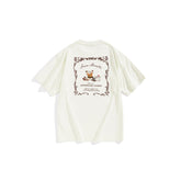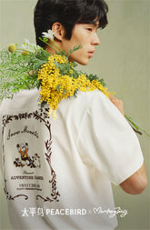 Fit Type: Loose FitColor: WhiteStyle: CasualOccasion: EverydayMaterial: CottonComposition: Cotton 100% Pattern Type: GraphicDecoration: PrintingNeckline: O-NeckSleeve Length: Half SleeveSleeve Style: Regular SleevesLength: RegularStretch: Slight StretchSeason: SummerSale Channel: OnlineCollection: Peacebird x Monkey Ting Size(inches) Height Length Chest Shoulder Sleeve S 165/84A 26.38 40.94 19.13 8.43 M...- $36.00