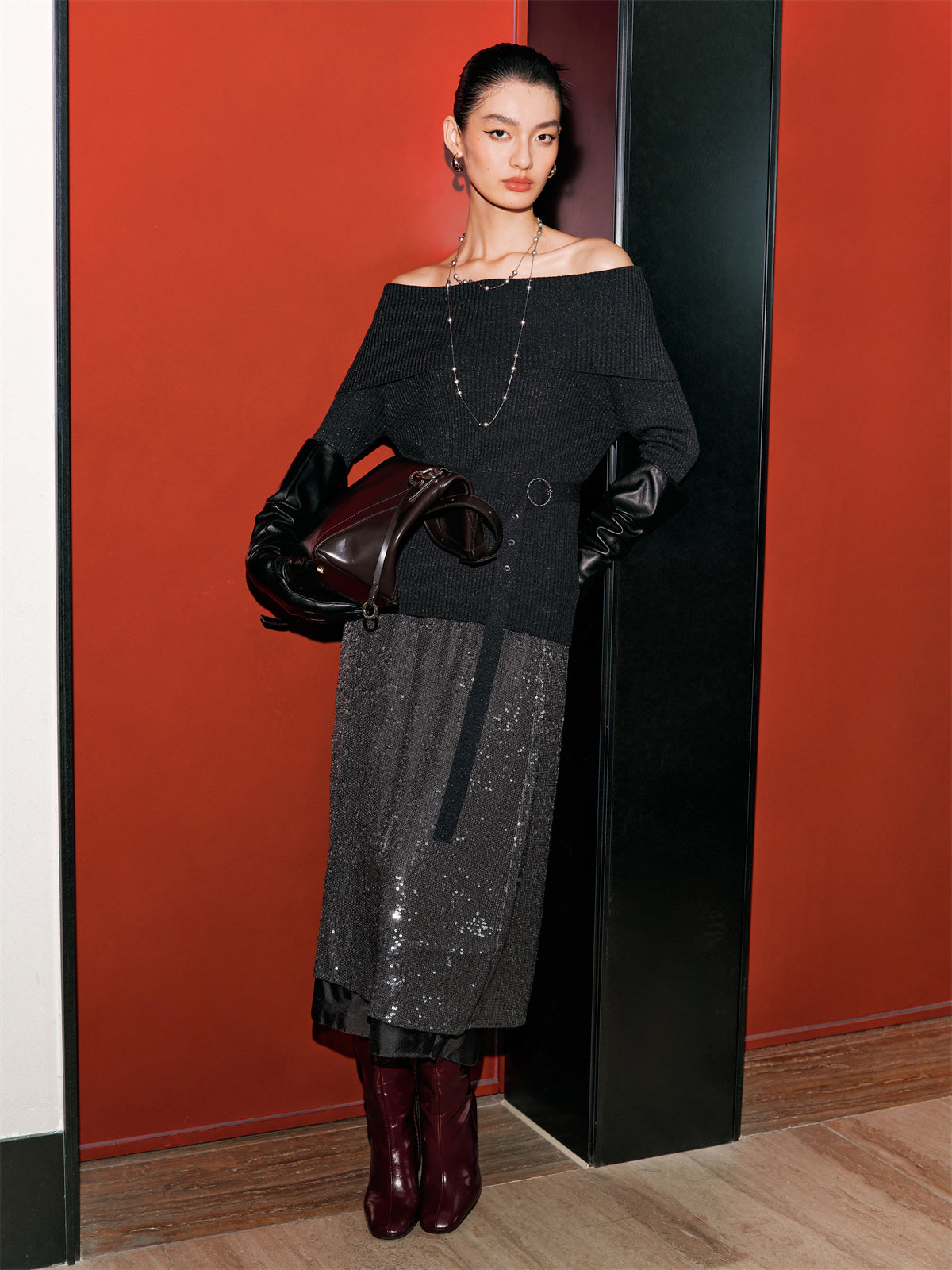 Neckline: Slash Neck