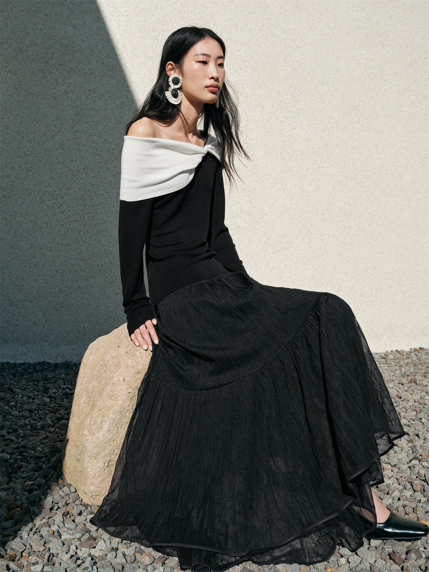 Neckline: Slash Neck
